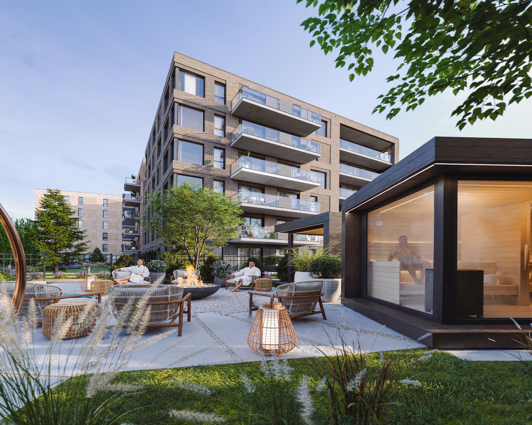 Un lounge chaleureux avec billard et cuisine, une salle de sport, deux terrains de pickleball et une vaste cour intérieure avec circuit thermal font de ce quartier douillet et accueillant un lieu unique grâce à ses installations et commodités exceptionnelles.