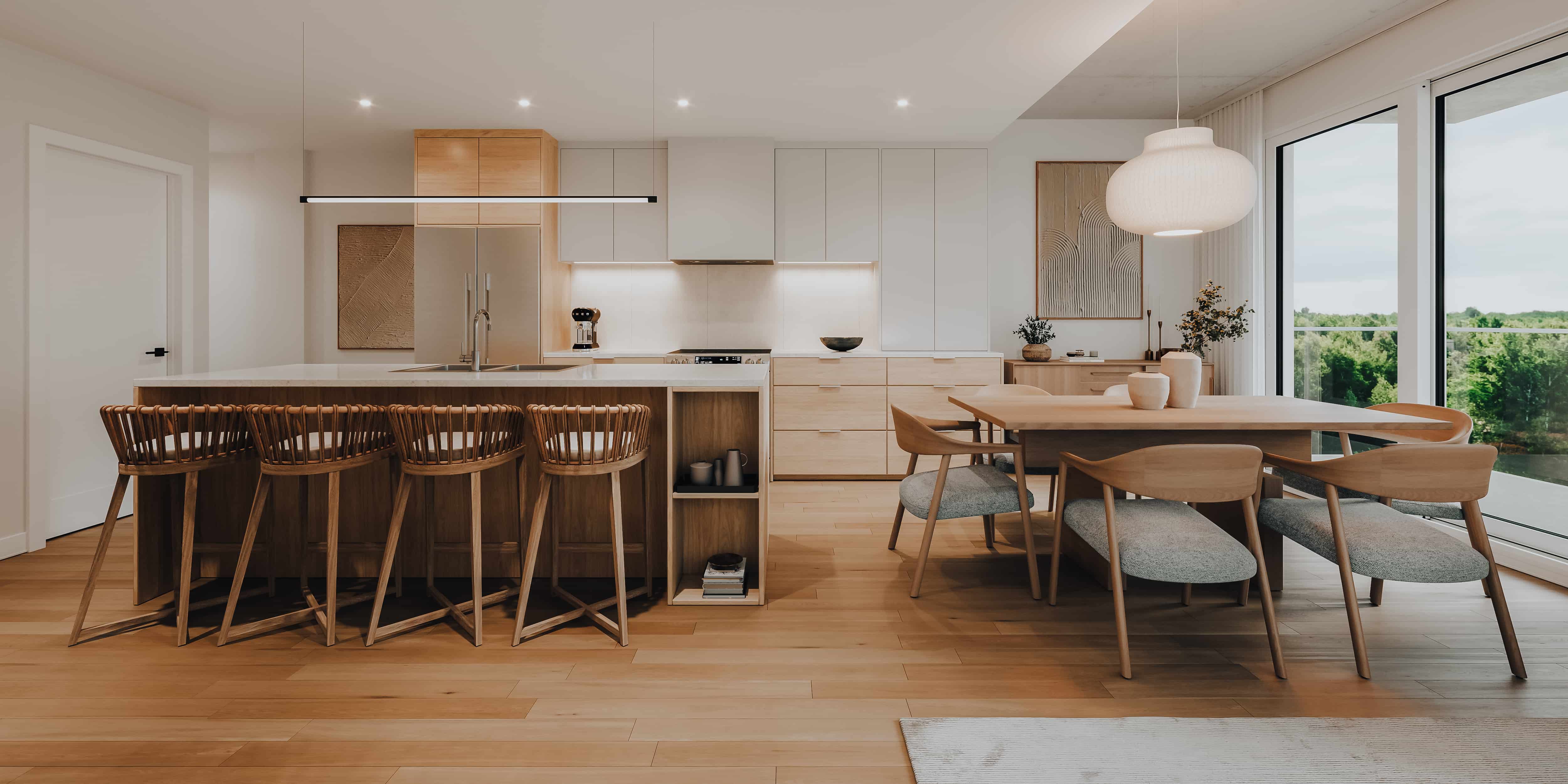 L’ambiance chaleureuse est sublimée par des finitions haut de gamme, des matériaux nobles et des espaces extérieurs intimes offrant des vues dégagées sur la nature.